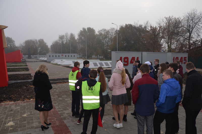 23 октября 2019 г. обучающиеся 8 "Б" класса под руководством Степаненко О.В.и Мячиной С.А. совершили экскурсию на мемориал "Родина-мать". Попова А.В., зам. директора по ВР рассказала  гимназистам о работе эвакогоспиталя №1329 в здании МБОУ БГО "Борисоглебская гимназия №1 в годы Великой Отечественной войны", о памятнике "Борцам за власть советов" и мемориале "Родина-мать".