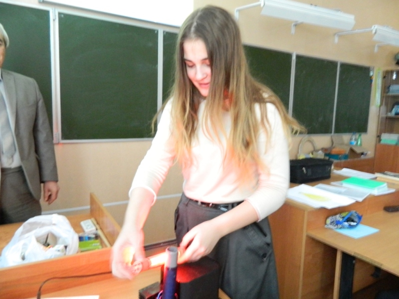 На уроке физики учащиеся 8 «Б» класса в экспериментальной лаборатории изучали работу тепловых двигателей; 8 «А» - исследовали  влияния параметров микроклимата на энергосбережение, 11 класса в ходе урока-практикума выяснили, как происходит производство и передача электрической энергии.