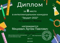 В направлении «Физика» 2 место занял Мицкевич Артём, обучающийся 11 класса МБОУ БГО «Борисоглебская гимназия №1» (руководитель – Белюстов В.Н., учитель физики). Сертификаты участника получат Толстых Н. (11 кл.), Иванов Д. (10 кл.), Мячин Н. (10 кл.)
