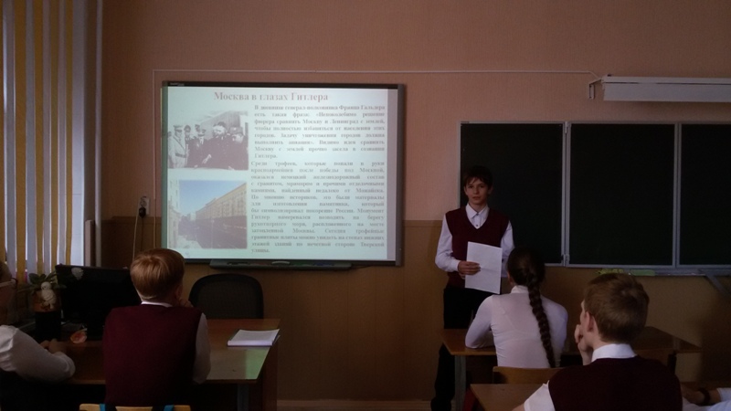Классный час в 7 «А» классе был посвящён самым значимым событиям Великой Отечественной войны. Гимназисты говорили о великих сражения, городах-героях, о тех, кто воевал и о тех, кто жил в то страшное время.
