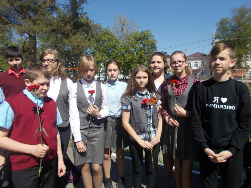6 мая в 7 «Б» классе состоялся классный час, посвящённый дню Победы, – «Этот праздник со слезами на глазах…». Гимназисты еще раз вспомнили историю Великой Отечественной войны, рассказали о своих родственниках, принимавших участие в сражениях, почтили память погибших солдат минутой молчания. Завершился классный час возложением цветов к памятнику Г.А. Печковскому.