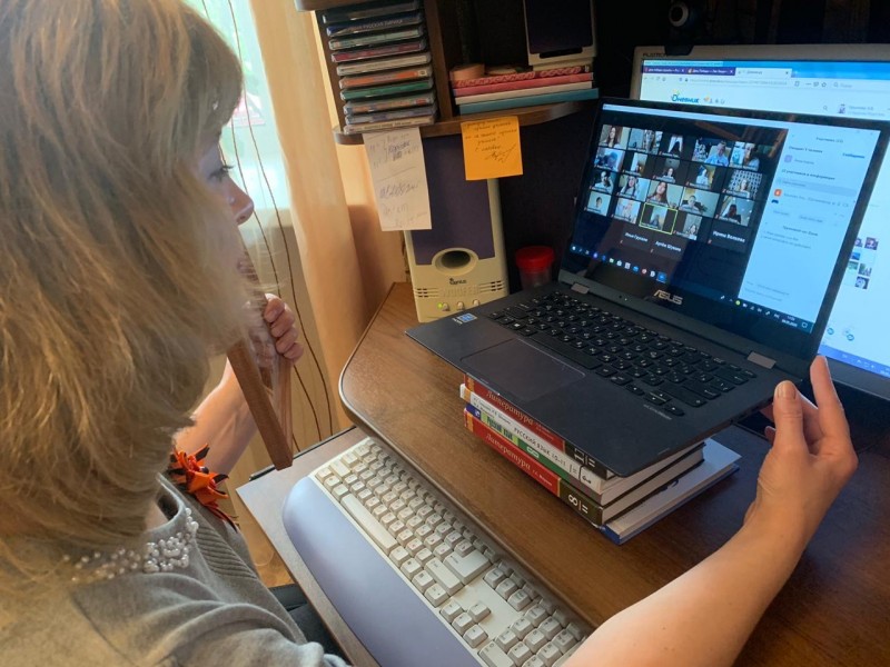 По инициативе Бирюк Ани, ученицы 7 класса,  9 Мая ровно в 11:00 под мелодию военных лет в формате видеоконференции 22 ученика вместе с членами своих семей и классным руководителем Крыловой Э.В. встретились, чтобы вспомнить и поблагодарить своих прадедов и прабабушек за счастье жить на родной земле под мирным небом. В этот день звучали в эфире имена, истории судеб людей, которые навсегда останутся в строю "Бессмертного полка". Закончилась встреча коллективным исполнением уже ставшего народным гимна "великим тем годам" - "День Победы".