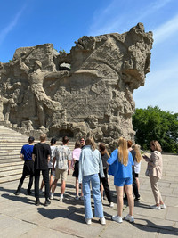 Мамаев Курган известен в первую очередь памятником-ансамблем «Героям Сталинградской битвы» с главным монументом «Родина-мать зовёт!». На Мамаевом Кургане существует несколько братских и индивидуальных могил, в которых покоится прах более чем 35 000 защитников Сталинграда. Гимназисты поклонились праху героев и стали очевидцами торжественнейшего из моментов: смены Почетного караула в Зале Воинской Славы. Безусловно, посещение Мамаева Кургана стало ключевым событием путешествия.