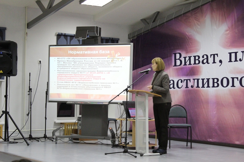 27 января 2017 года в МБОУ БГО «Борисоглебская гимназия №1» состоялось родительское собрание по вопросам приема граждан на обучение по образовательным программам начального общего образования.