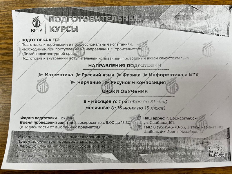 Также гостем родительского собрания в 10 классе (классный руководитель Крылова  Э.В.) стала специалист БФ ВГТУ Ирина Михайловна Шабельник, которая познакомила родителей десятиклассников с историей Борисоглебского филиала ВГТУ, перечислила специальности, которые возможно получить в БФ ВГТУ, рассказала о перечне предметов, сдаваемых в форме ЕГЭ и правилах поступления на различные факультеты Воронежского государственного технологического университета.