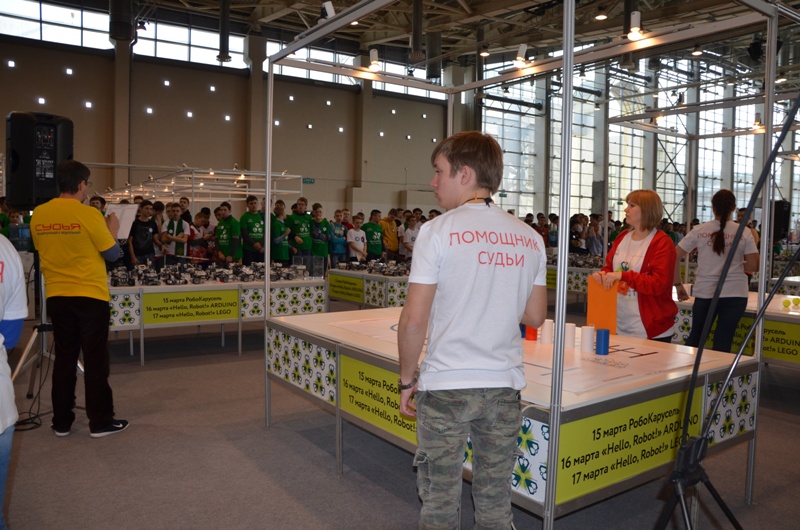 Учитель информатики Степаненко О.В. работала 15 марта 2017 г.  в качестве судьи на площадке соревнований "Робокарусель" (траектория-счетчик).