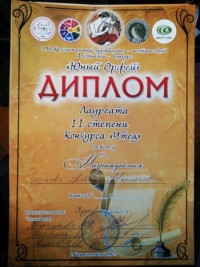 Устинова Марина - победитель "Поэтического конкурса"  (авторские стихи)  (руководитель Золотухина Е.И.)