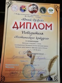 Кутепова Полина - победитель "Поэтического конкурса" (авторские стихи) в номинации "Военная тематика/стихи, посвященные Великой Отечественной войне, боевым действиям в Афганистане и Чечне/ (14-16 лет) (руководитель Степаненко О.В.)