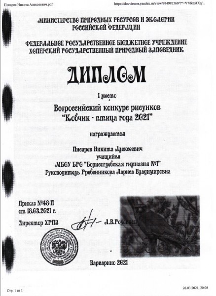 Учредитель конкурса: ФГБУ «Хопёрский государственный природный заповедник». Участникам предлагалось нарисовать рисунок, посвященный обитателю заповедника. Гимназисты приняли участие в этом конкурсе.