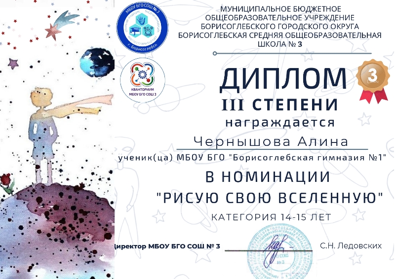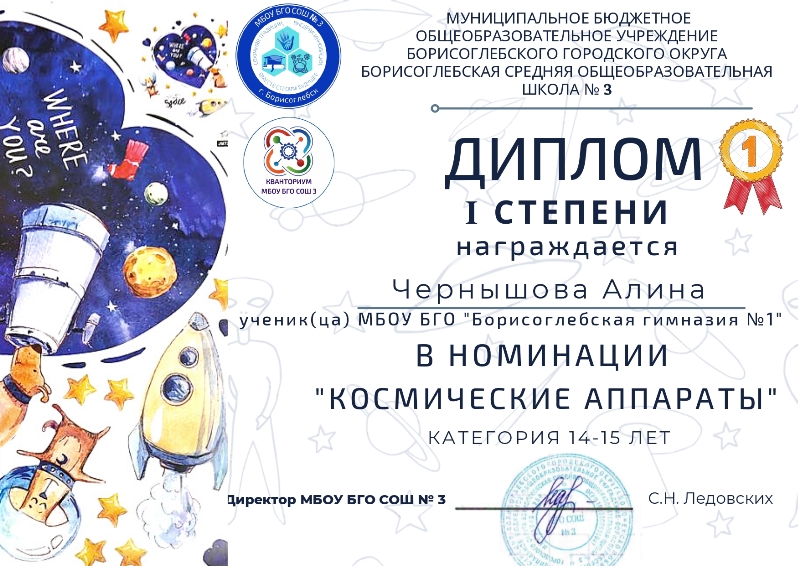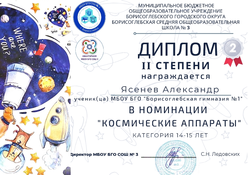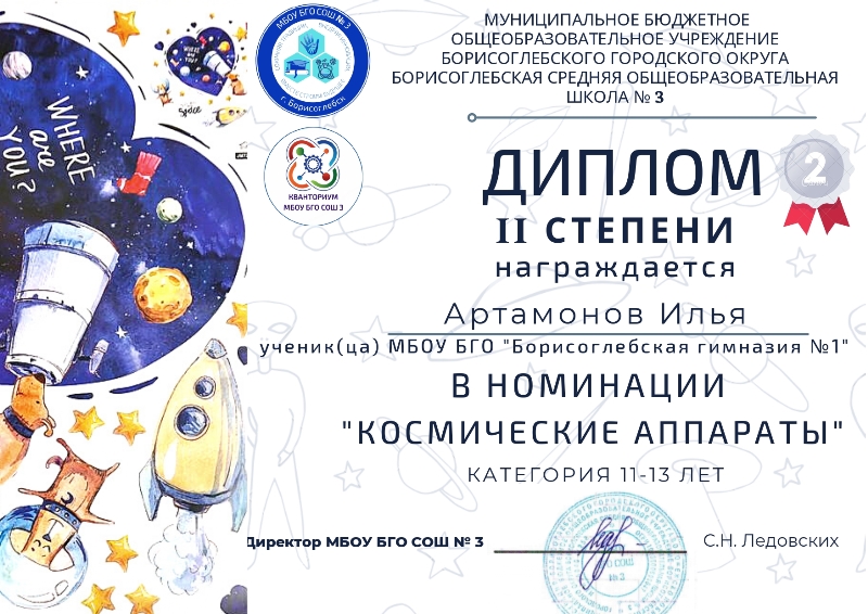 Подведены итоги муниципального конкурса творческих работ «Шаг во Вселенную - 2022», посвящённого Дню космонавтики, который был организован Школьным технопарком «Кванториум МБОУ БГО СОШ №3» при поддержке отдела образования и молодёжной политики администрации Борисоглебского городского округа.