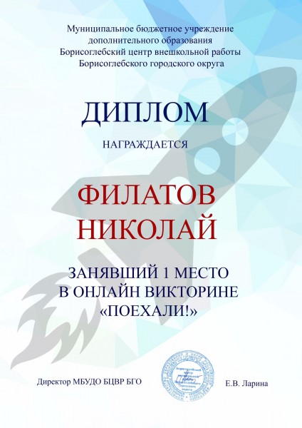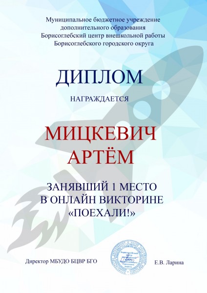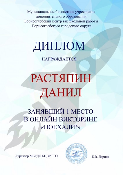 МБУДО БГО "БЦВР" была проведена онлайн-викторина "Поехали!".  Общее количество участников викторины: 28 человек. Участники, которые набрали максимальное количество баллов (80 из 80), стали победителями викторины! Гимназисты показали отличные результаты: