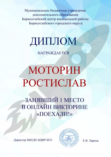 • 1 место - Моторин Ростислав, 10 класс (руководитель Степаненко О.В., учитель информатики)