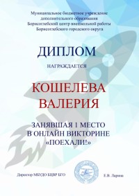 • 1 место - Кошелева Валерия, 10 класс (руководитель Степаненко О.В., учитель информатики)