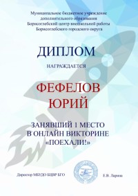 • 1 место - Фефелов Юрий, 10 класс (руководитель Степаненко О.В., учитель информатики)