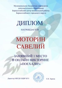 • 1 место - Моторин Савелий, 10 класс (руководитель Степаненко О.В., учитель информатики)