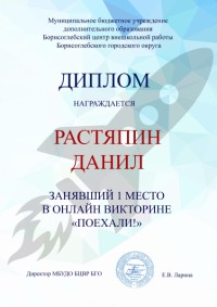 • 1 место - Растяпин Данил, 10 класс (руководитель Степаненко О.В., учитель информатики)