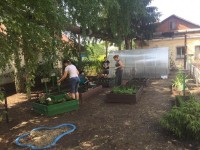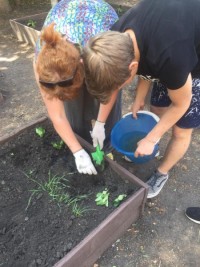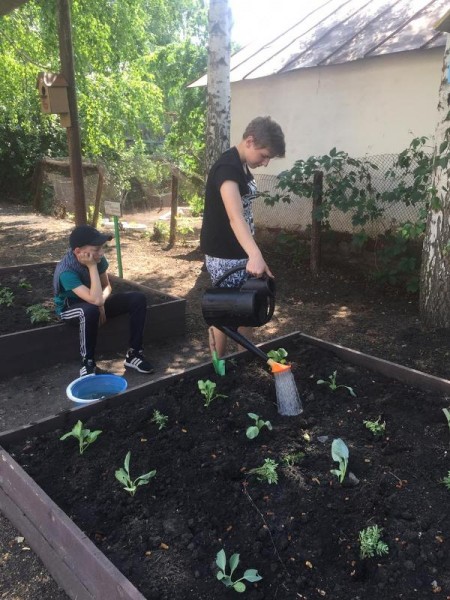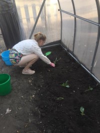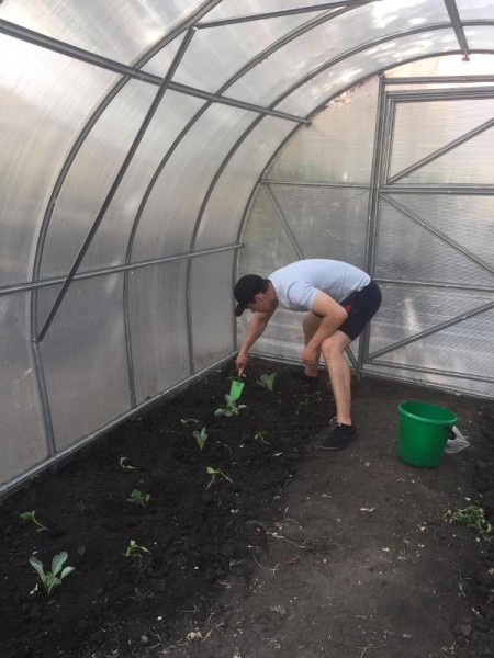 После вкусного и сытного завтрака  наш отряд отправлялся на экспериментальный участок, где уже вовсю  благоухают цветы и набирают силу овощи. Консультируют нас  по вопросам ухода за растениями в открытом грунте и в теплице  учитель биологии Громова Т.С. и наш руководитель Голомазова Ж.М.