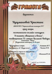 В мае 2020г все девчонки и мальчишки Воронежской области получили уникальную возможность принять участие  в поэтическом онлайн-конкурсе «А память священна и вечна», посвященном юбилею Великой Победы, который проводило ЛОУ «Звезда поэта» в рамках внеурочной деятельности Центра образования цифрового и гуманитарного профилей «Точка роста». Этот конкурс объединил всех любящих поэзию и желающих поделиться своим талантом, причём и поэтов, и чтецов. Тема стихотворений должна была быть связана с Великой Отечественной войной и Великой Победой. Для участия в конкурсе необходимо было записаться на мероприятие, пройдя по ссылке http://дистантврн.рф, затем записать видео, прислать его на адрес электронной почты организатора конкурса (МКОУ Старокриушанская средняя общеобразовательная школа)  и разместить его в школьной группе в vk https://vk.com/public162405233 под хештегом #А_ПАМЯТЬ_СВЯЩЕННА_И_ВЕЧНА .