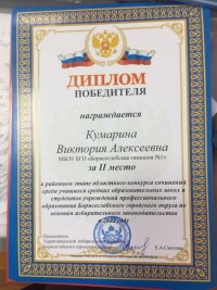 • Кумарина В., 10 кл - 2 место в конкурсе сочинений