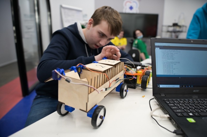 Каждая корпорация получила уменьшенный прототип конвейера, который в дальнейшем был внедрен в процесс имитации реального производства. А также решала ряд задач: снять размеры изделия для дальнейшего моделирования, напечатать кубики (груз) и детали для прицепа на 3d-принтере, разработать корпус прицепа и подготовить к лазерной резке из фанеры, подключить двигатели конвейера, запрограммировать алгоритм сортировки грузов и автоматической доставки на склад, предусмотреть передачу информации в облако (интернет вещей). Безусловно, не обошлось без различных трудностей и неожиданных препятствий в работе, с которыми участники справились по-разному! На итоговой защите были представлены 6 производственных линий корпораций.