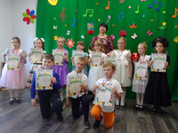 Он стал яркой финальной точкой творческого проекта "Музыка, лето и дети" в рамках которого студийцы нарисовали рисунки к выученным ими музыкальным пьесам и украсили кабинет красочными  поделками лесных цветов, бабочек, весёлых божьих коровок.