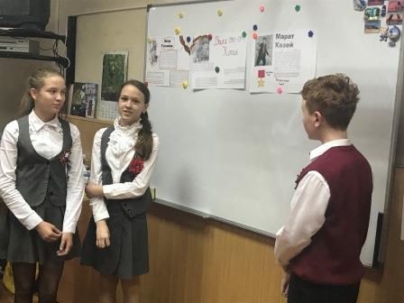 Классный час 7 мая 2019 года в 6 классе был посвящён именно им – ЮНЫМ ГЕРОЯМ ВОЙНЫ. Гимназисты познакомились с историей жизни и подвига пионеров-героев и представили своим одноклассникам «боевые листовки».