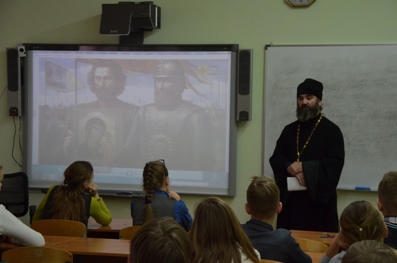 День народного единства – праздник, сближающий народы. Он относится к государственным праздникам России. Является одновременно и старым и новым российским праздником. Для России наших дней День народного единства — праздник, в который мы отдаём дань истинным традициям патриотизма, согласия народа, веры в Отечество. На классном часе присутствовал почетный гость - отец Александр. Ребята узнали о том, что в церковном календаре на 4 ноября приходятся два праздника - день освобождения Москвы от поляков и день прославления Казанской иконы Божьей Матери.