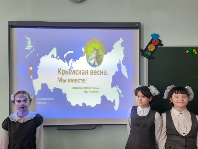 15 марта 2022 года для ребят  4 класса прошел   классный час «Крымская весна». Классный руководитель Негадова О.П. рассказала детям о Крымской весне. О том, что 18 марта в Российской Федерации отмечают годовщину исторического события, значение которого невозможно переоценить. Семь лет назад состоялось воссоединение Крыма и Севастополя с Россией. Жители Крыма и Севастополя обратились к России с призывом защитить их права и саму жизнь, когда на Украине началась самая настоящая гражданская война.