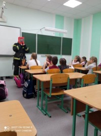 27 сентября 2021 г. в 3 классе состоялся классный час, посвященный правилам пожарной безопасности. В гостях у ребят побывал сотрудник органов МЧС. Он рассказал третьеклассникам о правилах безопасного поведения, а также о том, как вести себя при пожаре.  Ребята активно задавали вопросы, а еще с огромным удовольствием примеряли детали экипировки.