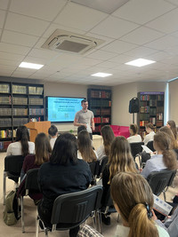 18 мая  2023 г. в городской библиотеке им.Кина проходила встреча представителей Саратовской академии права с выпускниками 9-х классов и десятиклассниками Борисоглебского городской округа. Ребятам рассказали об истории учебного заведения, о факультетах и специальностях, назвали перечень предметов, который необходимо сдавать в форме ОГЭ или ЕГЭ, чтобы стать студентом Саратовской академии права. Гимназию на данном мероприятии представлял 10 класс в сопровождении учителя математики Солодковой Н.В.