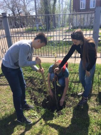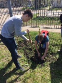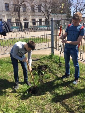 Далее последовала акция дерево Победы. Каштан, высаженный во дворе гимназии в память о выпускниках 1941 года, стал объектом особой заботы гимназистов.