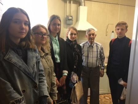 А пока одна группа гимназистов поливала и окапывала дерево Победы, другая навестила всеми любимого дядю Мишу – ветерана Великой Отечественной войны Руденко М.А., дружба с которым длится уже несколько лет. Мы искренне благодарны ветерану за нашу счастливую жизнь!