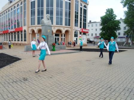 И, наконец, День Победы – 9 мая. Десятиклассники приняли участие в нескольких мероприятиях – Почетном карауле у памятника Неделину, Почетном карауле у Знамени Победы, в Молодежной Вахте памяти и  выносе георгиевской ленты, флеш-мобе на площади «День Победы».