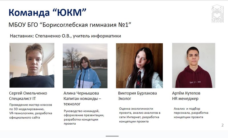 Команда обучающихся 10 класса: Чернышова Алина, Бурлакова Виктория, Кутепов Артём, Омельченко Сергей (наставник Степаненко О.В., учитель информатики) впервые приняли участие в научном турнире и показали отличные результаты - 1 место!