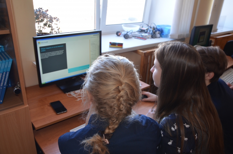 В рамках игры-квеста ребята работали с заданиями учебного курса «Основы компьютерной грамотности» (Microsoft Digital Literacy - https://www.microsoft.com/ru-ru/DigitalLiteracy/curriculum4.aspx#securitypriv)  по теме «Безопасность и конфиденциальность при работе с компьютерами». Ребята смогли познакомиться с различными угрозами для работы компьютера и для хранящихся в нем данных, а также узнали, как защитить компьютер от данных угроз с помощью некоторых предупредительных мер. Мероприятие позволило познакомить ребят с этическими и правовыми аспектами использования сети Интернет. Ребята с увлечением проходили опрос на интерактивной доске, работали с различными источниками информации. В результате групповой работы ими были созданы буклеты-памятки «Правила безопасной работы в сети Интернет» для обучающихся начальных классов, а также социальные плакаты "Мы за безопасный Интернет!"