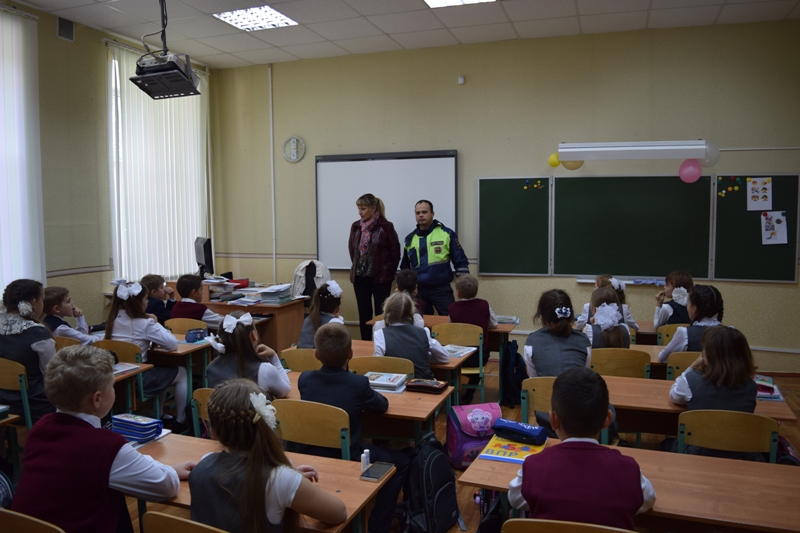 С 25 по 30 сентября 2017 г. в МБОУ БГО «Борисоглебская гимназия№1» состоялась «Неделя безопасности», посвященная вопросам обеспечения безопасности детей на дорогах. В рамках недели состоялся ряд мероприятий:  рейд по проверки  светоотражающих элементов у обучающихся 1-11 классов, конкурс листовок о правилах вождения велосипедов, конкурс макетов пешеходного перехода, флешмоб «Мы  знаем знаки дорожного движения», уроки безопасности дорожного движения. На одном из уроков безопасности присутствовала Семенова О.А., инспектор по пропаганде ОГИБДД ОМВД России по г.Борисоглебску, старший лейтенант полиции. Ольга Александровна познакомила обучающихся   с новыми правилами дорожного движения, перевозки детей и профессией дорожно-транспортного инспектора. Встреча была очень полезной и интересной.