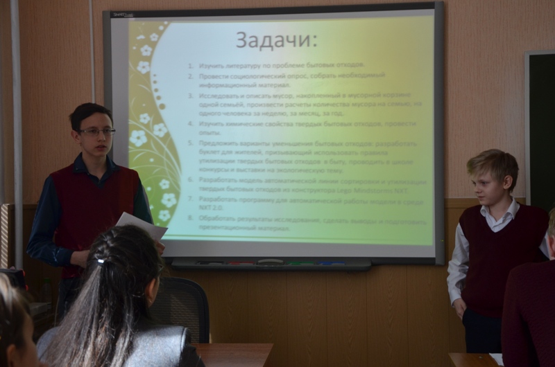 • «Автоматическая линия сортировки и утилизации твердых бытовых отходов». Шаталов В., 7 «А» класса, Мячин К., 6 класс. - диплом 2 степени