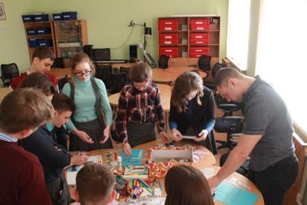 Первая часть образовательного события по проблеме "Здоровая планета? Здоровые мы?" прошла в формате "круглого стола". Затем старшеклассники, которые получили определённый информационный багаж из уст профессионалов, разделились на 4 группы и вместе со своим консультантом отправились каждая на творческую площадку, где в течение 20 минут работали в команде и искали необычные формы привлечения внимания общественности к обозначенным экологическим проблемам.