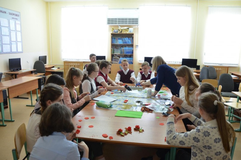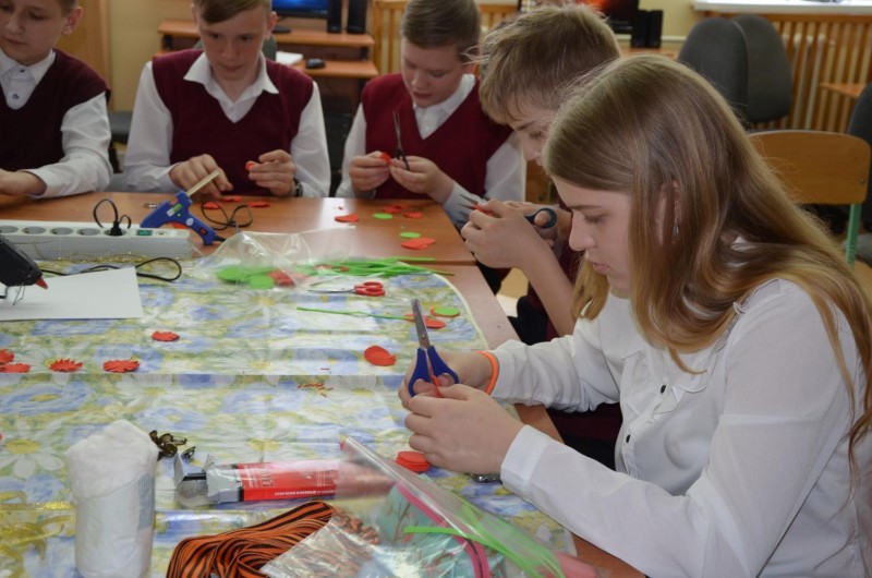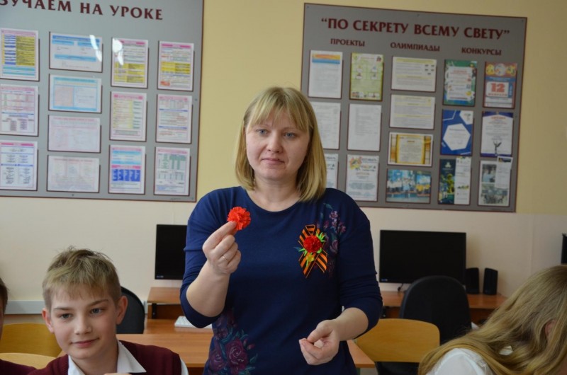 7 мая 2019 г. в рамках классного часа "Никто не забыт, ничто не забыто" обучающиеся 7 "Б" класса познакомились с историей георгиевской ленточки и сделали своими руками букетики с гвоздикой для парада. 9 мая 2019 г. обучающаяся 7 "Б" класса Степаненко Алиса в числе 5 лучших обучающихся города возглавила колонну "Бессмертный полк", а 26 обучающихся 7 "Б" класса (классный руководитель Степаненко О.В.) приняли участие в показательных выступлениях и награждении школьных отрядов и военно-патриотических (военно-спортивных) клубов – победителей смотра строя и песни на центральной площади им. Ленина.  В 18:55 отряды присоединились к общероссийской «Минуте Молчания». На площади им. Ленина прозвучал звук метронома, голос диктора, слова памяти и скорби о погибших в Великой Отечественной войне: