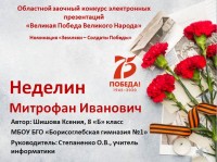 В номинации «Земляки – Солдаты Победы» - победитель Шишова Ксения, 8 "Б" класс МБОУ БГО "Борисоглебская гимназия №1" (руководитель: Степаненко О.В., учитель информатики).