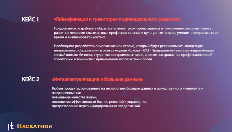 Турнир состоял из двух этапов: разработки проекта и его представления членам жюри. Для участия в турнире нужно было собрать команду из 2 - 5 человек – школьников 8 - 10 классов (по состоянию на 2019/2020 учебный год) и предложить решение одного из двух кейсов.