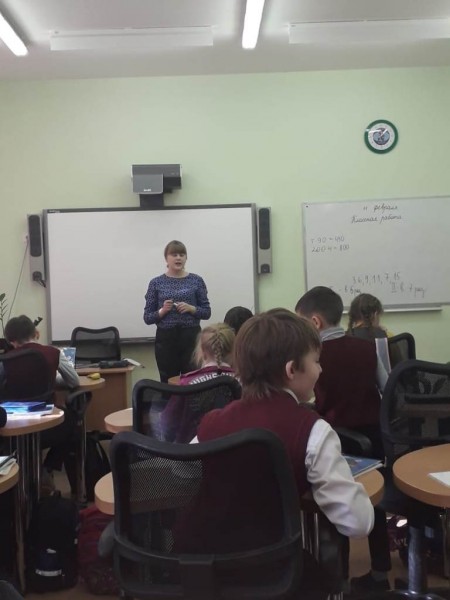 Михайлова В.А. с 3 «Б» классом работала на уроке математике по теме «Умножение в случаях вида 50*9 и 200*4 с применением игровой технологии» (на уроке можно было увидеть работу с «Сюжетными задачами», игру «Лучший счётчик»).