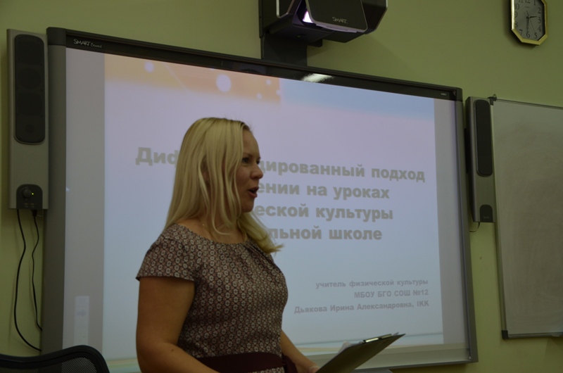 1. Дьяковой Ирины Александровны, учителя физической культуры МБОУ БГО СОШ №12, по теме «Дифференцированный подход в обучении на уроках физической культуры в начальной школе»;