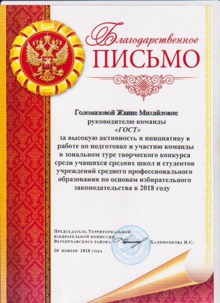 Отдельная благодарность учителям, подготовившим команду Ушковой О.Г., учителю английского языка и Голомазовой Ж.М., учителю истории, обществознания и экономики