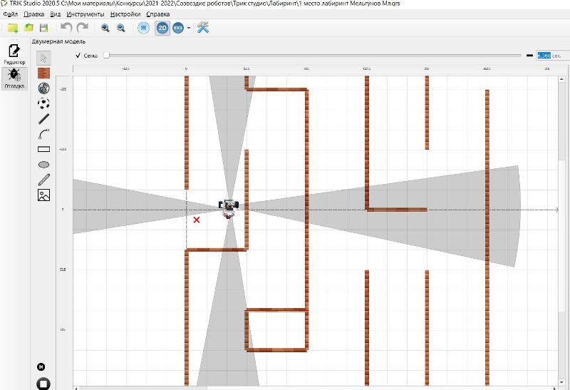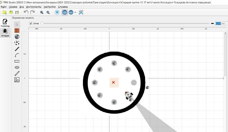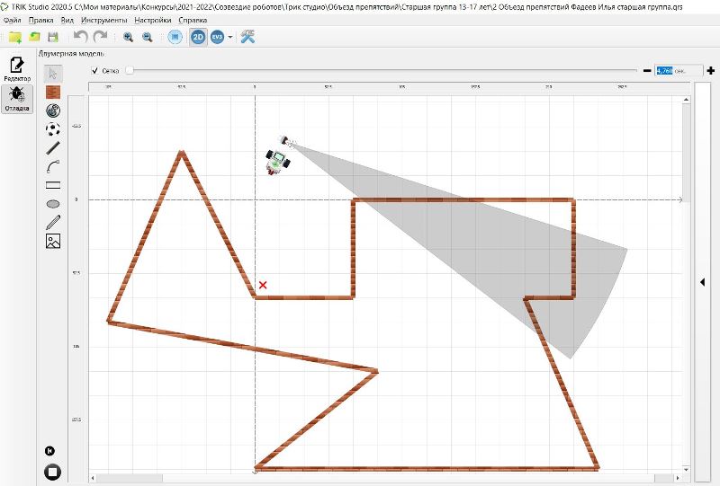 1.3. Выполнение заданий в визуальной среде программирования TRIK STUDIO с имитационным 2D моделированием для роботов LegoNXT и LegoEV3 в режиме онлайн (индивидуальное участие):
