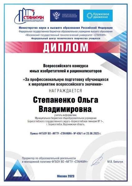 Команда МБОУ БГО "Борисоглебская гимназия № 1" (руководитель Степаненко О.В., учитель информатики) показала отличные результаты: