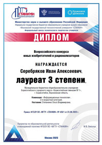 • 3 место - Серебряков Иван, 7 «А» класс