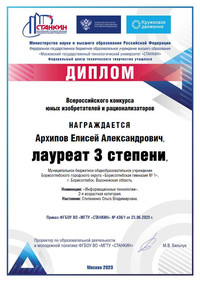 • 3 место - Архипов Елисей, 7 «А» класс
