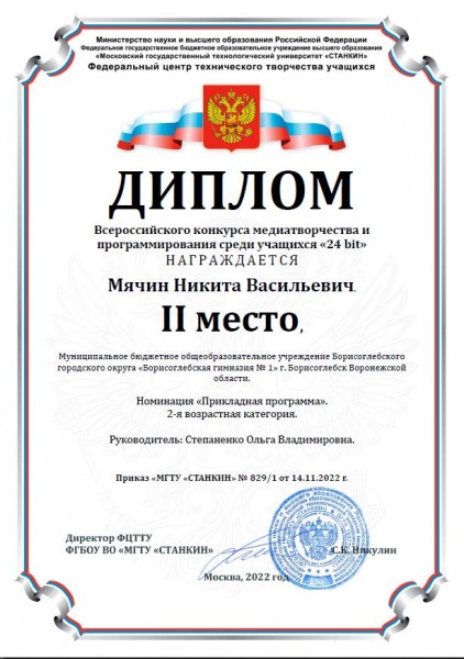 • 2 место - Мячин Никита, 10 класс
