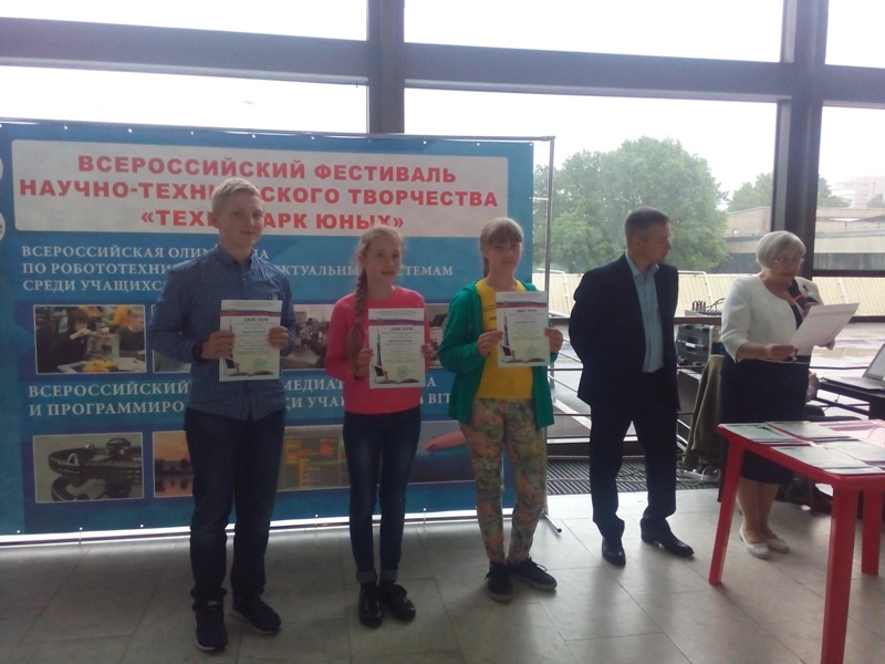 15 июня 2017 г. в г. Москва на базе ГБПОУ «Воробьевы горы» прошел очный финал Всероссийской олимпиады по робототехнике и интеллектуальным системам в рамках Всероссийского фестиваля научно-технического творчества «Технопарк юных» (учредитель - Министерство образования и науки Российской Федерации, организатор Фестиваля - Федеральный центр технического творчества учащихся Федерального государственного бюджетного образовательного учреждения высшего образования «Московский государственный технологический университет «СТАНКИН» (ФЦТТУ «МГТУ «СТАНКИН»). Положение: http://www.olimpsozvezdie.ru/Polozhenie_texnopark_2017.pdf